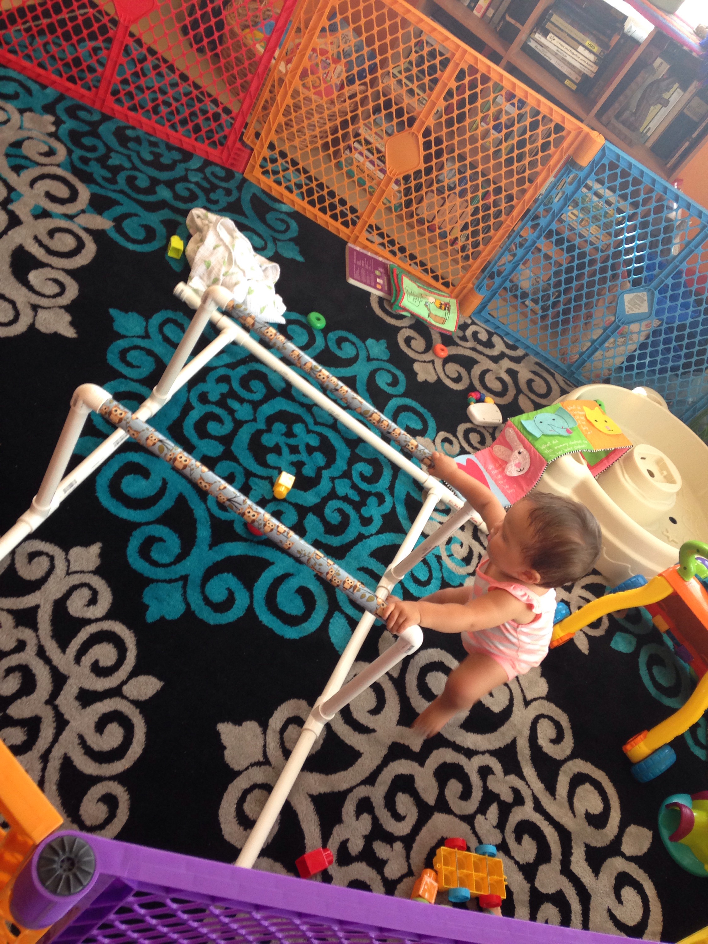We give Gabi lots of time together but we also want her to be a bit independent and play by herself. This actually works out great because her little “playroom” is right off the kitchen so I can prep/cook lunch and dinner and still keep an eye on her. She’s becoming quite mobile and I’m thinking she’ll be walking very very soon! I can hear her cooing and oohing and when i peek around the corner to spy check on her, it’s so sweet to see her little eyes darting around and she’s actually talking to herself in her own unique “gibberish”. This little one makes me smile.
