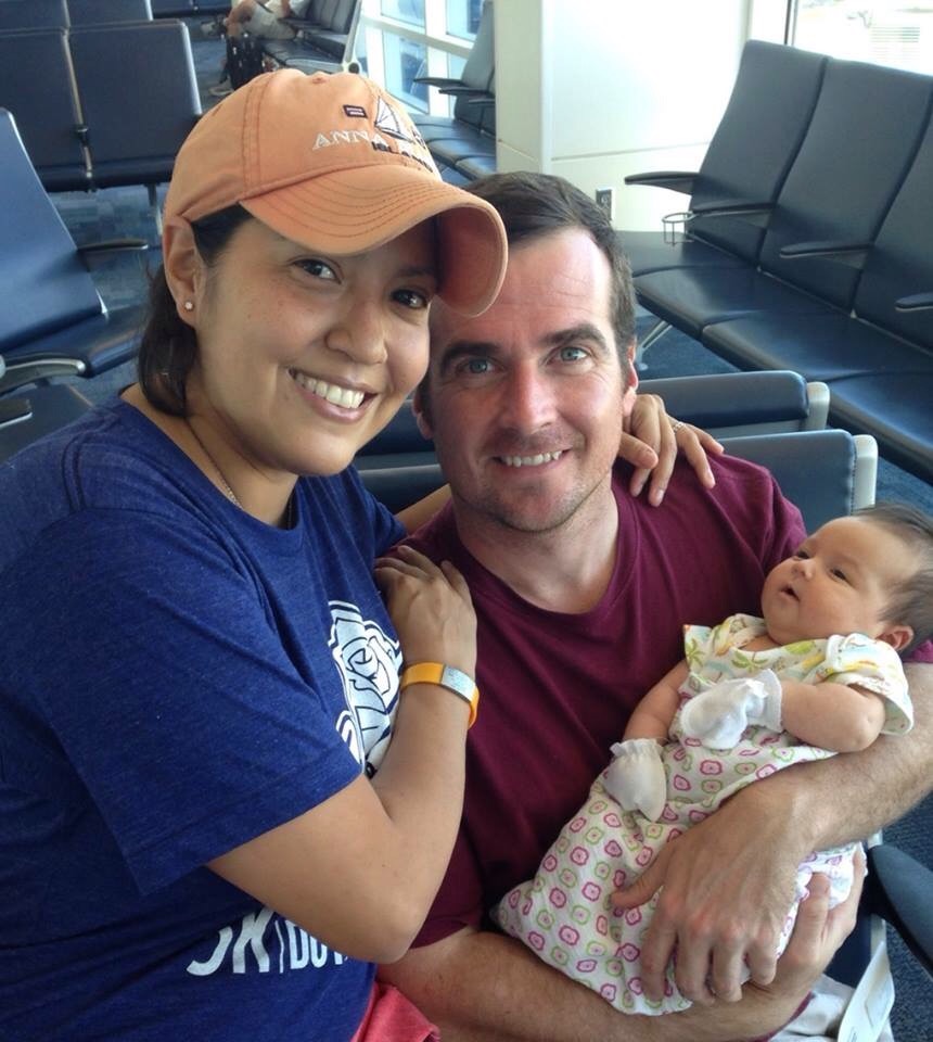At the Jacksonville airport for the first leg of the trip. Gabriela was 6 weeks old and was a rockstar: she slept during both flights!